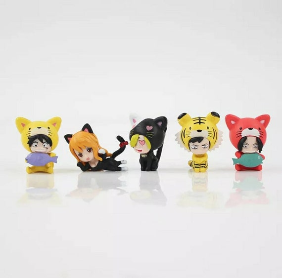 One Piece 5pcs Mini Figures Kawaii Kitty Cat Cosplay Luffy Etsy
